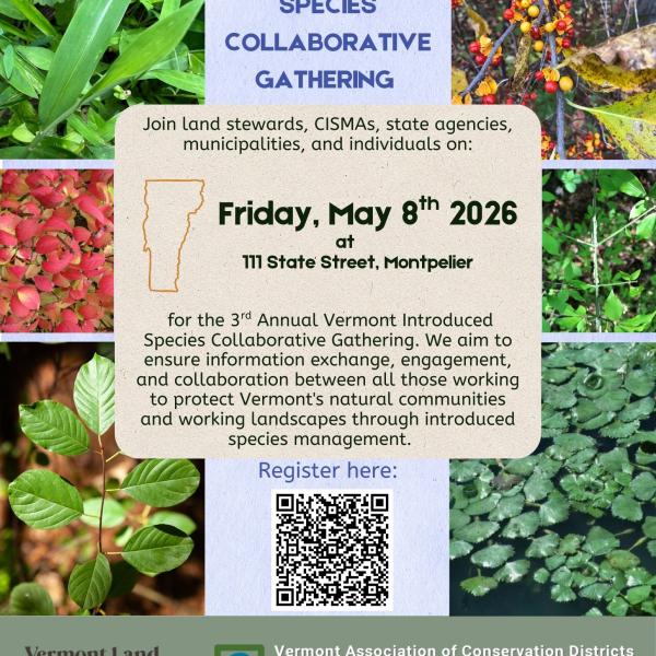 About the Vermont Introduced Species Collaborative: We are a group comprised of members from the Vermont Land Trust, the Vermont Agency of Agriculture Food and Markets, and the Vermont Association of Conservation Districts. Our efforts aim to ensure information exchange, engagement, and collaboration between all those working to protect Vermont's natural communities and working landscapes through introduced (invasive) species management.