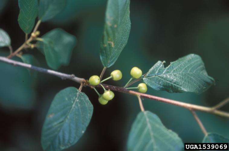 Glossy buckthorn leaves in alternate arrangement- 1539069, James H. Miller, USDA Forest Service